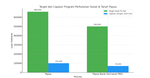 Perhutanan Sosial adalah kebijakan nasional yang memberikan akses legal kepada masyarakat untuk mengelola kawasan hutan negara secara berkelanjutan dengan tujuan meningkatkan kesejahteraan masyarakat, melestarikan lingkungan hidup, dan mengurangi ketimpangan penguasaan lahan. Program ini secara resmi dicanangkan dalam Rencana Pembangunan Jangka Menengah Nasional (RPJMN) dengan target pengalokasian areal seluas 12,7 juta hektare di seluruh Indonesia, termasuk Tanah Papua sebagai salah satu wilayah prioritas. Prioritas ini didasarkan pada beberapa pertimbangan strategis, antara lain tingginya ketergantungan masyarakat adat terhadap hutan, luasnya wilayah adat belum terlegalisasi, serta tingginya potensi konflik tenurial yang belum terselesaikan.